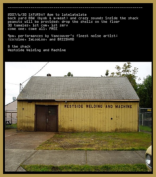 DATES YEAR-MONTH-DATE (International Standard ISO 8601) F=flyer P=photo *=pdf (sometimes performs live in other forms) 2019-06: Vancouver WA USA @ Art At The Cave Gallery a short video from 2013 is on display for the month of June 2019. 2014-08-29: live Vancouver WA USA @ NW Couv Fest and BRIZBOMB 2xLP Record Release Show 2013-08-23: live Eugene Oregon USA @ 2013 Eugene Noise Fest F 2013-08-22: live Vancouver WA USA @ Kiggins Theatre F 2012-10-20: live Vancouver WA USA @ Westside Welding and Machine F 2012-06-30: live Portland OR USA @ 5th annual St. John's NoFest P 2012-04-06 to 2012-04-28: live installation Vancouver WA USA @ North Bank Gallery * 2012-03: Artist Residency @ WSUV - CMDC MUS 452.01 2011-08-25: live Vancouver WA USA @ The Space Art Collective F P P P P P 2010-08-07: live Vancouver WA USA @ Westside Welding and Machine F 2009-11-12: presentation and performance @ WSU 2009-11-07: live Eugene Oregon USA @ 2009 Eugene Noise Fest F P 2009-10-17: live Vancouver WA USA @ The Rocket House F P P P P P 2009-08-15: live Vancouver WA USA @ Westside Welding and Machine 2009-06-06: live Vancouver WA USA @ Westside Welding and Machine 2009-04-14: live Portland Oregon USA @ Dunes 2008-08-30: live Victoria CANADA @ Victoria Noise Fest 2008-08-28: live Seattle Washington USA @ Full Tilt F F F 2008-08-26: live on air Dark Woods Casino Party 9PM KAOS 89.3 FM Olympia WA USA 2008-07-12: live Portland Oregon USA @ Ash Street F 2008-06-21: live Portland Oregon USA @ No.Fest : Nu Music.Arts St.Johns F P 2008-05-06: live Vancouver WA USA @ Westside Welding and Machine F 2008-02-18: live Portland Oregon USA @ The TUBE P 2007-10-31: HALLOWEEN KBOO Boo Bash! live Portland Oregon USA @ Holocene F 2007-10-27: live Portland Oregon USA @ The Escape. 2007-07-20: live Portland Oregon USA @ Roseland Grill. 2007-06-30: live Vancouver WA USA @ Westside Welding and Machine F 2007-05-18: live Eugene Oregon USA @ 2007 Eugene Noise Fest F P P 2007-04-20: live Portland Oregon USA @ CACOPHONY F 2007-03-15: live on the air 11PM KBOO 90.7 FM Portland OR USA P 2007-03-10: live Salem Oregon USA @ Jaspers F 2007-03-08: live Eugene Oregon USA @ DIVA 2007-03-07: live Sacramento California USA @ Lunas Caf? 2007-03-05: live on air Los Altos Hills CA USA KFJC 89.7 FM GROUNDSWELL 2007-03-04: live San Francisco California USA @ ArtSF 2006-12-03: live Portland Oregon USA @ Ground Kontrol retro arcade! F 2006-09-15: live Portland Oregon USA installation at North Coast Seed Building P 2006-09-08: live Portland Oregon USA @ CACOPHONY F 2006-08-12: live renegade performance Vancouver WA USA @ a parking lot P 2006-05-13: live Vancouver Washington USA @ Cooters Barn F 2005-09-??: BRIZBOMB begins |
